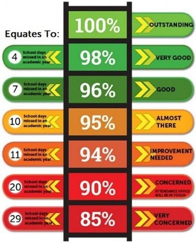 Good attendance is defined as being in school for at least 95% of the time, equating to no more than 8 days off per school year.